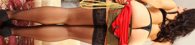 Jodie Gasson shows she has a real naughty streak as she poses in her latex corset - stockings and high heels