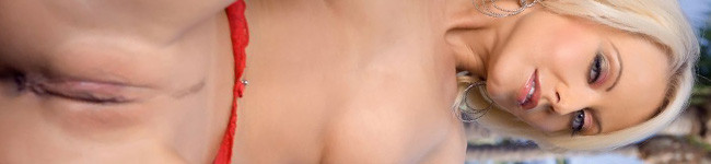 Gorgeous blonde Jana D poses outside in her dark stockings