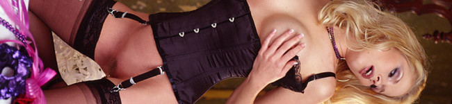 Busty blonde Kristi Cline in sexy black Corsage and Stockings