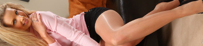 Georgi S is relaxing after work and removes her office attire to show us her black stockings