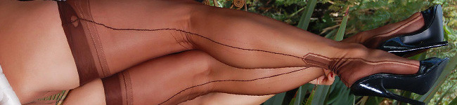 Curvy Housewife Amanda Moreno in sexy dot stockings.
