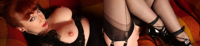Redhead Glamour MILF Katie Davies legs wide Open