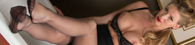 Chloe likes to relax in her vintage nylons after a long day at work, stripping of her satin blouse and tight pencil skirt.