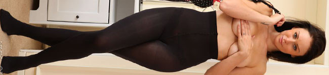 Amazing brunette Clare Richards teasing in skin tight leggings and stockings