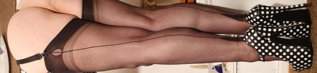 Sexy retro in the bedroom with hot milf Red! Slinky in nylon slip, bullet bra, vintage garter and sheer panties! Join her on the bed, black nylon clad legs wide open as she plunges her big dildo deep!