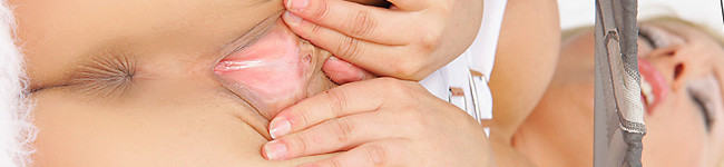 Lots of fun is Kaz having at the sun lounger! See her wearing a white ultra short skirt and a hot top. Soon her hand disappears in her grey Elbeo pantyhose and he starts working her pussy! For sure Kaz could need some help, so what are you waiting for?