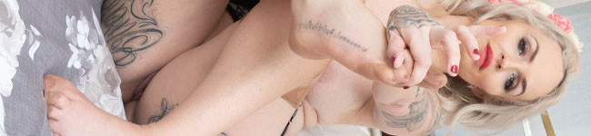 Raunchy tattood porn star Louise likes to get into some fetish fantasy, and here she's in a vintage nylon foot fetish scene! Reclining on the bed she shows fabulous legs and with no shoes her nylon feet are on offer to fantasise and enjoy jerking over!