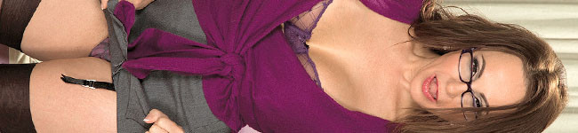 Horny brunette Mature Raquel Sieb looks sexy in purple Lingerie, black stockings, garter belt and stiletto Mules. Raquel is ready for Threesome with big black and White cock.