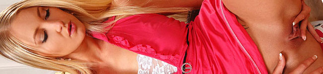A symphony of bright color is Czech lovely Susan Snow today as she poses in her violet red frock and stockings, accented by white wedgies. Soon she’s tugging up her hem to show us her white thong, and the treasures within! This hot babe really pulls herself wide to show her bright insides and tight bottom nook. Soon she’s out of her clothes except for those thigh high stocki