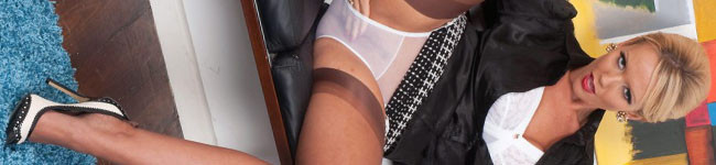 Glamorous Ashleigh McKenzie in RHT stockings, merry widow and sheer black panties!.