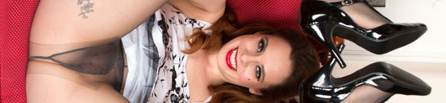 Mistique showing her long legs in black ff nylons and hairy haven in a super vintage corselette!