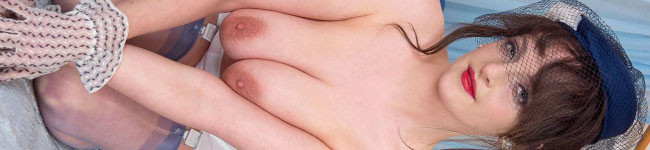 All dressed up but some sexy undies and vintage nylons for you, Lucy is ready for playtime on the bed! Let her tease you, showing her shapely ass and legs...and then you can cum together!
