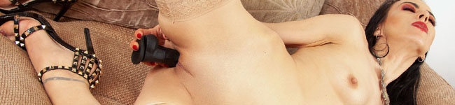 Look at the way the sheer lacy bodysuit hugs Flirty Naughty's slender curves. This hot and horny mommy wants to play. If you can't cum give her the D, she'll take care of her own needs. Pinching her nipples and rubbing her clit is the perfect warmup to make her bald pussy wet for her big dildo.