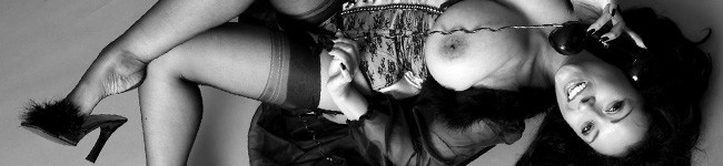 Danica Collins in corset and stockings in retro black and white set