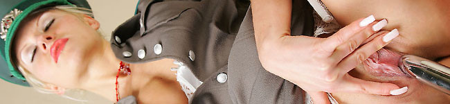 Horny Officer Monique in Russ Uniform and sexy white lingerie Stockings and Stiletto Heels.