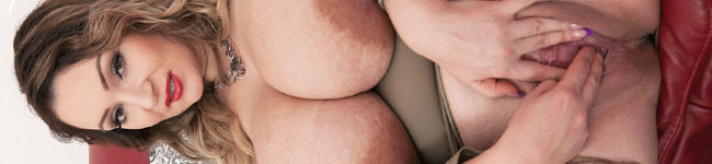 That's what Micky Bells' boobs are. Beyond belief. From a Voluptuous/XL Girl to a slim SCORE Girl and now back to Voluptuous and pregnant with breasts that are beyond belief in size and weight. Micky's pregnancy weight gain went straight to her boobs. Before this, she measured 36K. Now she says she thinks she's a 36L. She could actually be an M-cup now. All of her old bras no longer fit. The last time Micky weighed her boobs, they came out to two kilograms or four pounds each! Now she thinks they're even heavier and she feels they are still growing. People have always asked Micky if her tits are real. With this growth spurt, they still ask Micky that question. Some guys also ask her, ""Do you have a twin sister?"" and ""Is your mom available?"" Micky wears a coat over her extremely low-cut and tight dress and shows acres of cleavage. She walked outside like that and every head spun in her direction. Coming in out of the cold, Micky gets down to her stockings and gets comfy. Her areolae are a deep chocolate brown now. Tit play and finger-plugging begin. Her boobs quiver and roll like they have a mind of their own.
